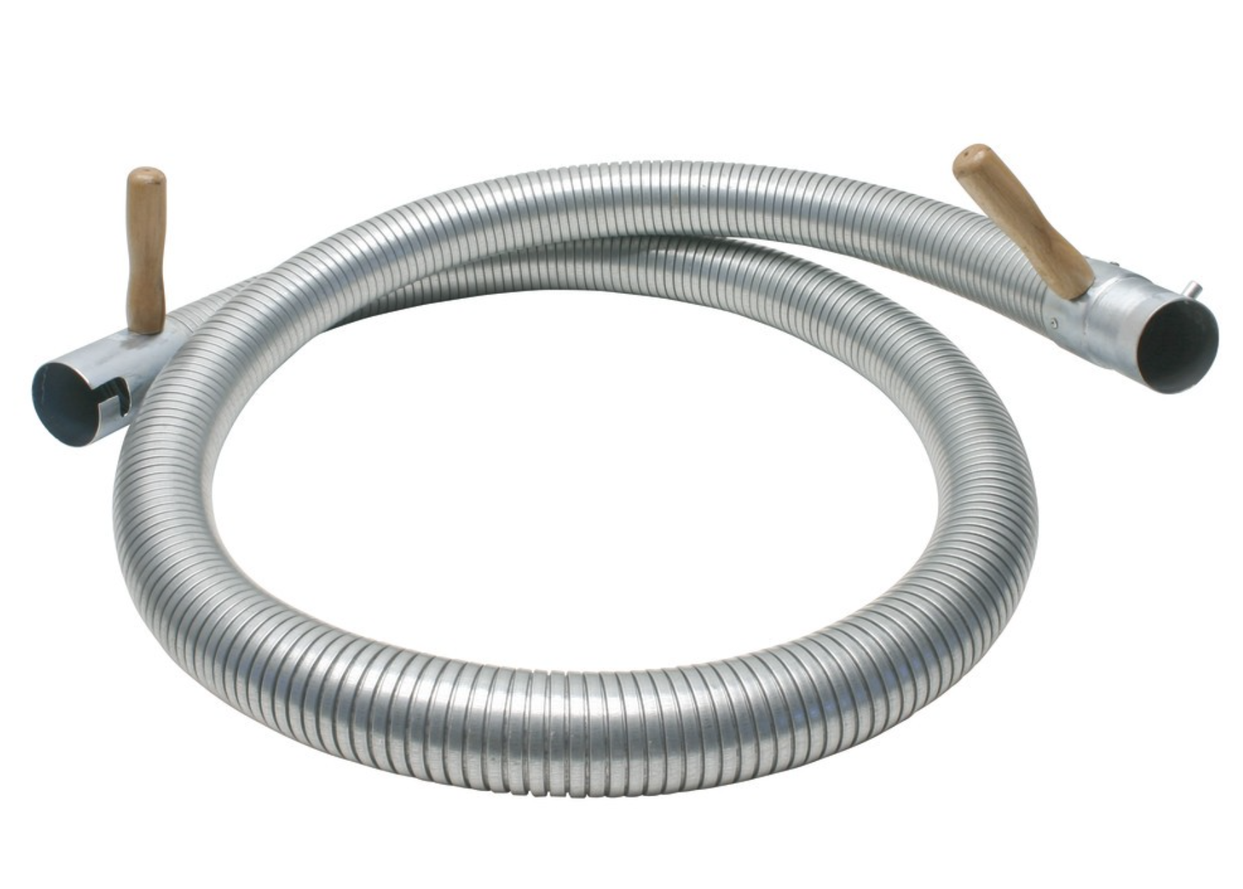 Nach DIN 14572, für den Anschluss an Stromerzeuger, verzinkter Metall-Spiralschlauch mit Holzgriffen zur Wärmeisolierung.