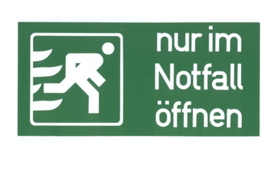 Aufkleber Schild " Nur im Notfall öffnen" 148x74 mm