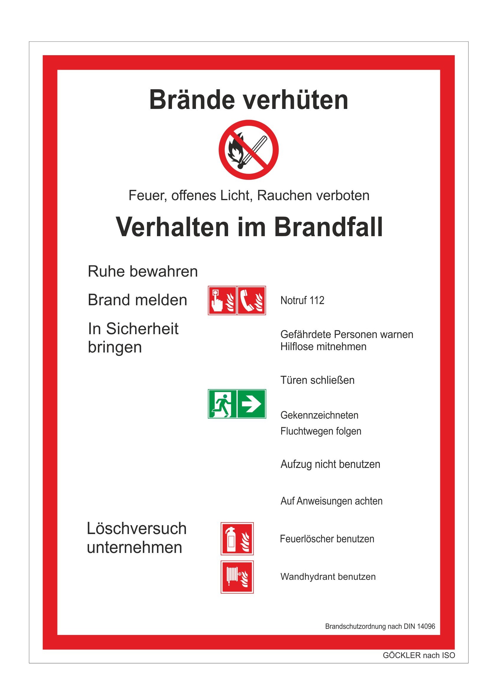 Brandschutzordnung Teil A Brände verhüten Schild DIN 14096