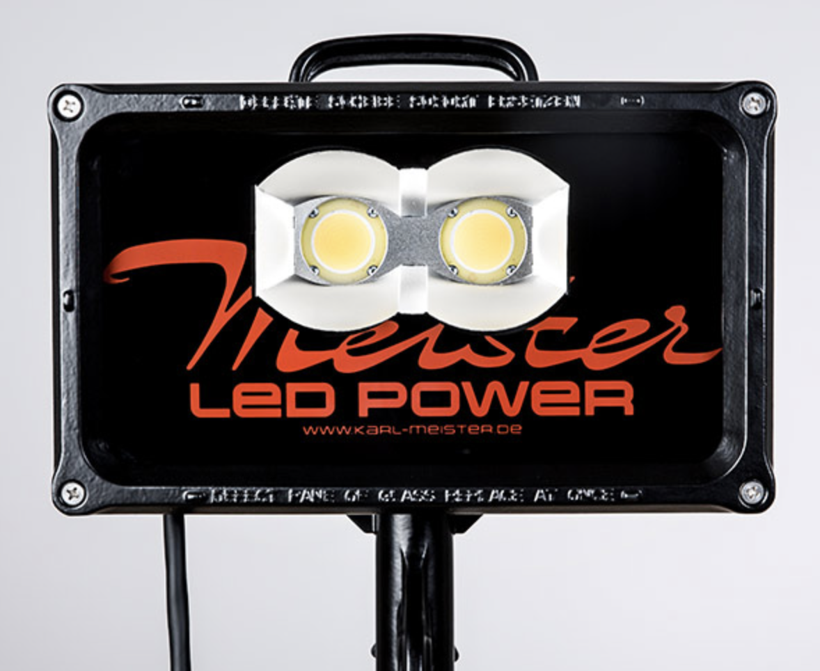 2 High Power LEDs, Lichtstrom 19.000 Lumen, Anschluss 230 V/140 W, 0,3 m Anschlussleitung H07RN-F 3G1,5 mit Schutzkontaktstecker DIN 49443 zur Verwendung mit Flutlichttragen.