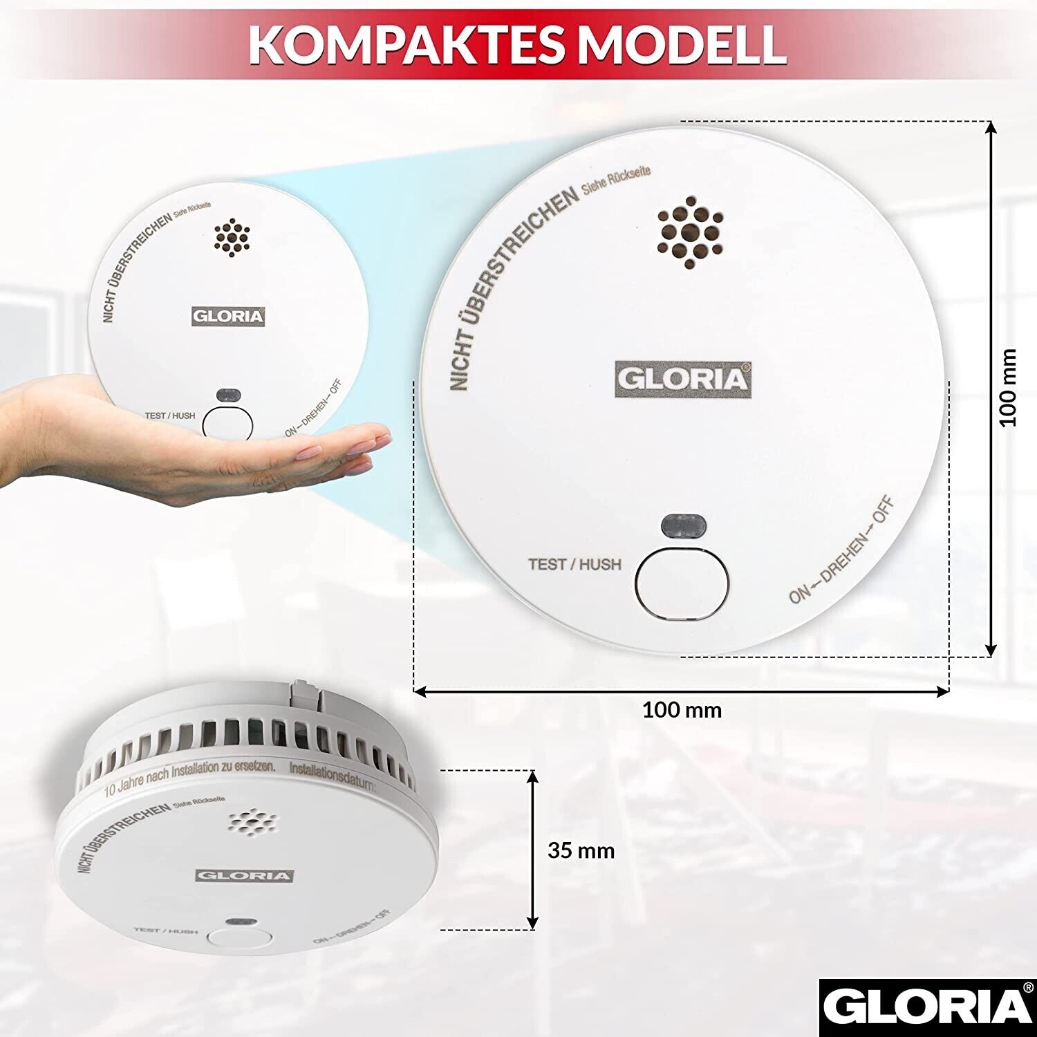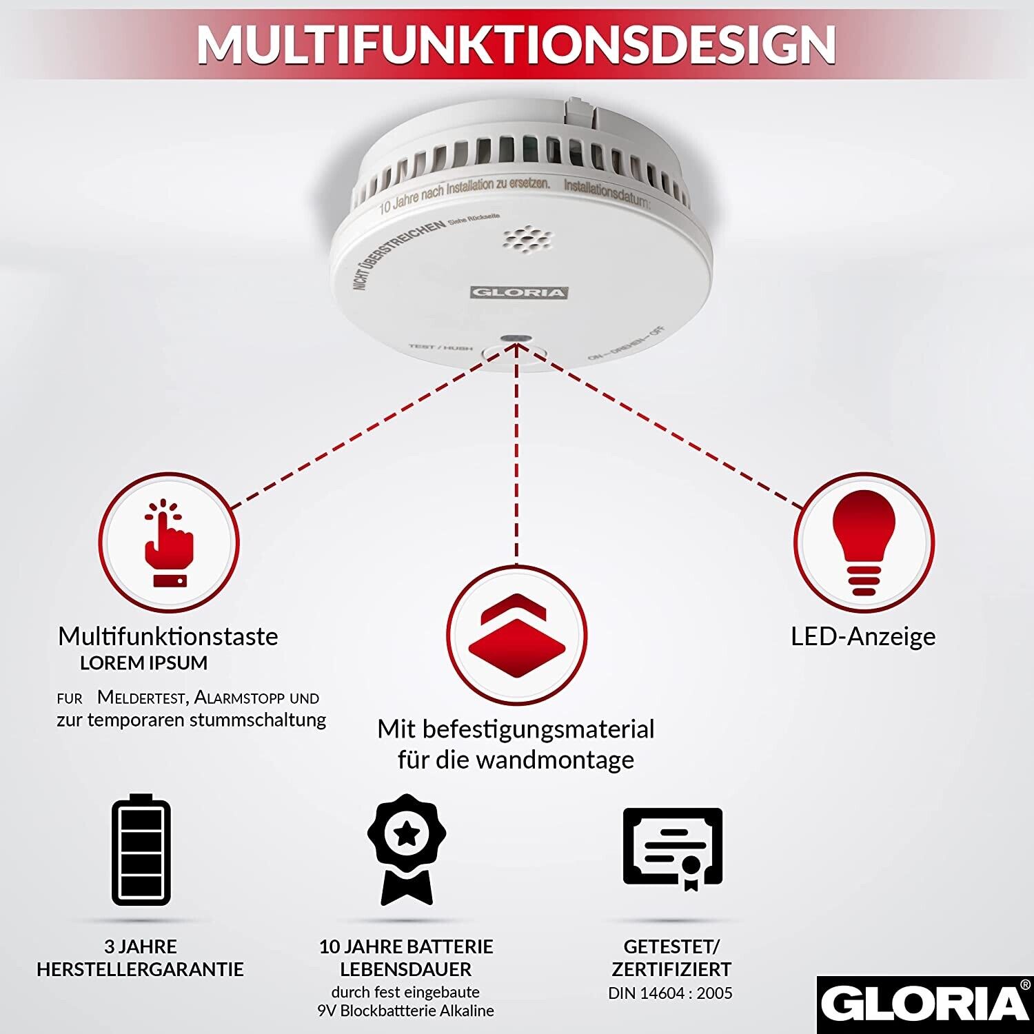 GLORIA Rauchwarnmelder Typ R-1 mit 3 Jahren Garantie auf Funktion, Sensorleistung, Material und Verarbeitung
