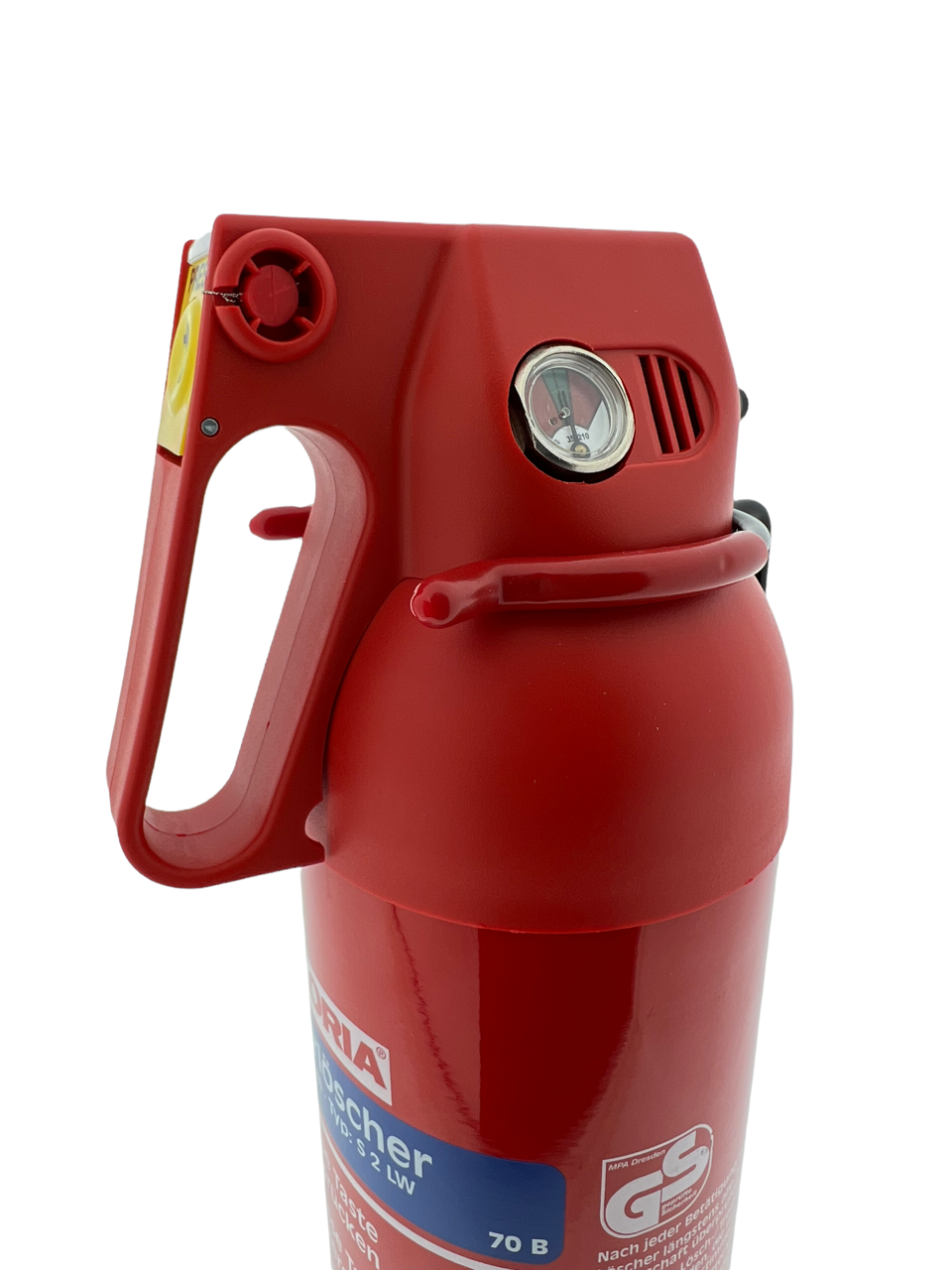 Feuerlöscher sauber halten, keine aggressiven Reinigungsmittel verwenden, nur mit einem feuchten Tuch reinigen.