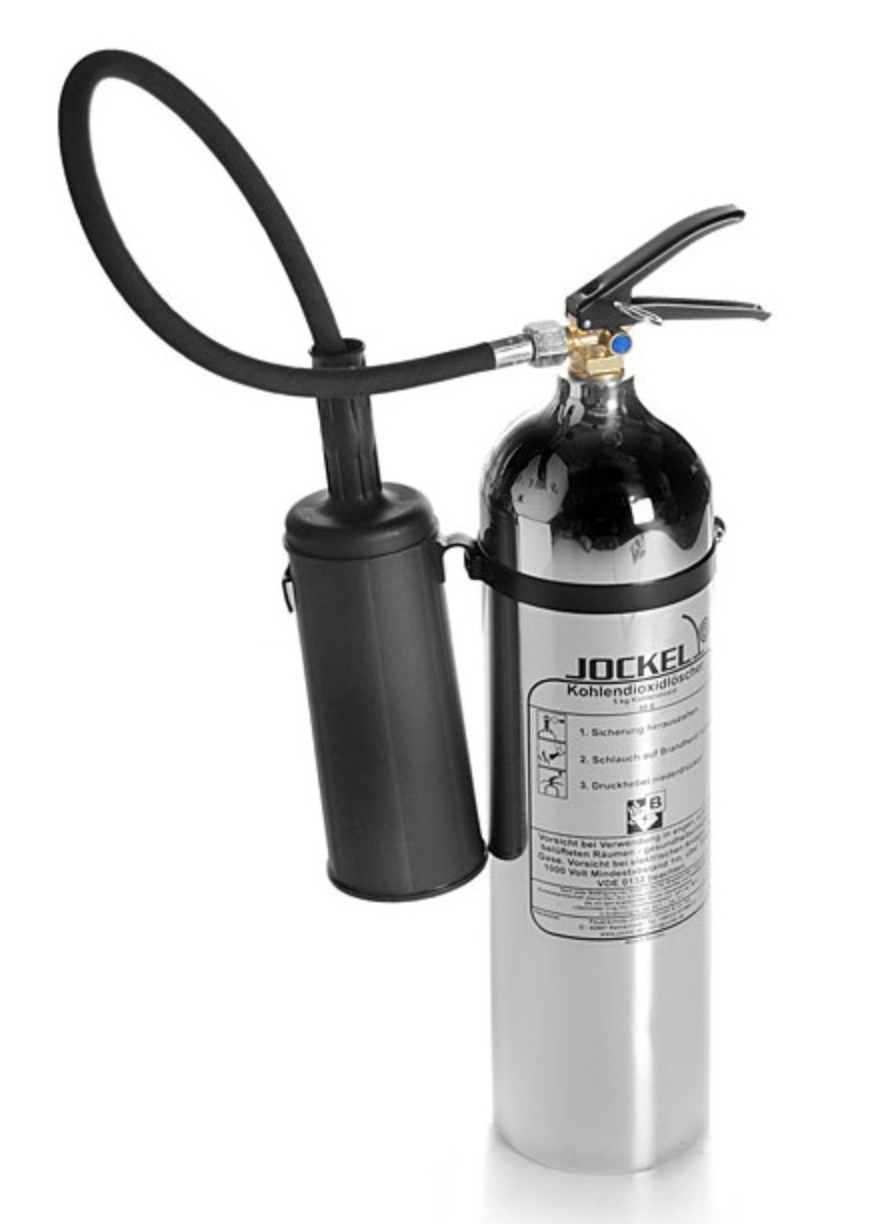 CO2-Feuerlöscher müssen gegen Umfallen und mechanische Beschädigung gesichert werden.