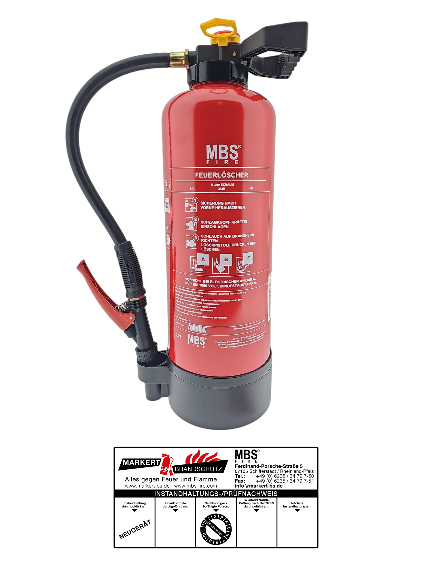 MBS-FIRE (MBK) 6L Fettbrand Auflade-Feuerlöscher 34A 233B 40F inkl. Halter. & Plakette