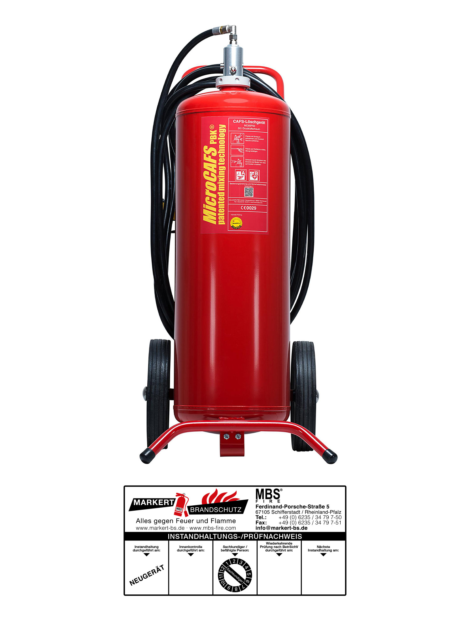 MicroCAFS 50 Liter MC6SP50T Schaum Feuerlöscher inkl. Plakette