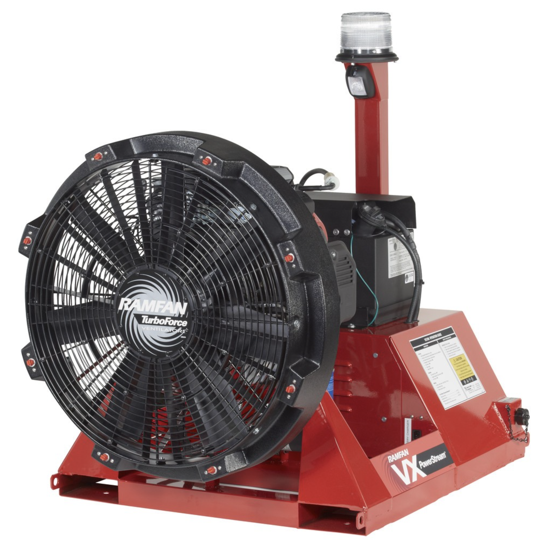 Kühlung, Belüftung und Entrauchung von großen Objekten wie Tiefgaragen, Produktionshallen, Hochhäusern, Bahn- und Straßentunneln etc. stellen immer wieder sehr große Anforderungen an Feuerwehren. Mobile Großlüfter wie der Ramfan VX700 helfen hier zuverlässig und effektiv. So kann die Feuerwehr mit diesem Großlüfter im Einsatzfall nicht nur Objekte belüften - die integrierte Wassernebel-Funktion ermöglicht auch das Kühlen und Niederschlagen von Rauchgasen.