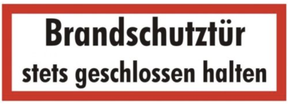 • Text: Brandschutztür Stets geschlossen halten! (Für Türen ohne Feststellanlage)