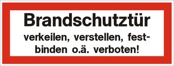 • Text: Brandschutztür verkeilen, verstellen, festbinden o.ä. verboten ! (Für Türen mit Feststellanlagen)