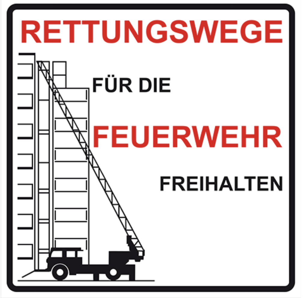 Schild "Rettungswege für die Feuerwehr freihalten"