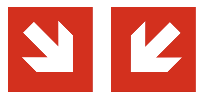 Richtungspfeil schräg Brandschutz  - Größe: 150 x 150 mm