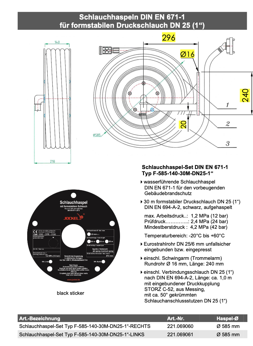 - 30 m formstabiler Druckschlauch DN 25 (1"),   DIN EN 694-A-2 schwarz, aufgehaspelt