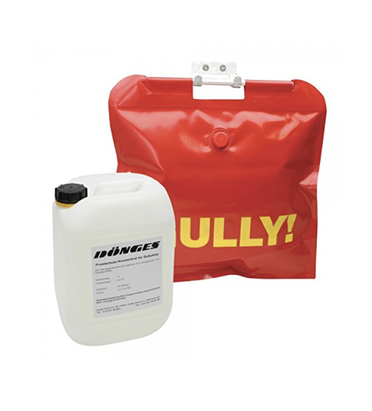 Der mit einer Mischung aus Wasser und einem speziellen Frostschutzmittel (im Winter) zu befüllende Gully-Stop wird im Notfall genommen und auf den Kanaleinlauf gelegt.