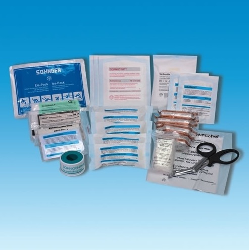 Für kleine Betriebsverbandkasten dient die Ausstattung als Orientierungshilfe die DIN 13157.