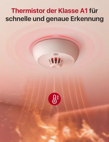 Präziser Hitzesensor (Klasse A1): Reagiert auf Temperaturen zwischen 54 °C und 65 °C. Ideal für Küche oder Garage, da er resistent gegen Fehlalarme durch Kochdämpfe oder Staub ist.